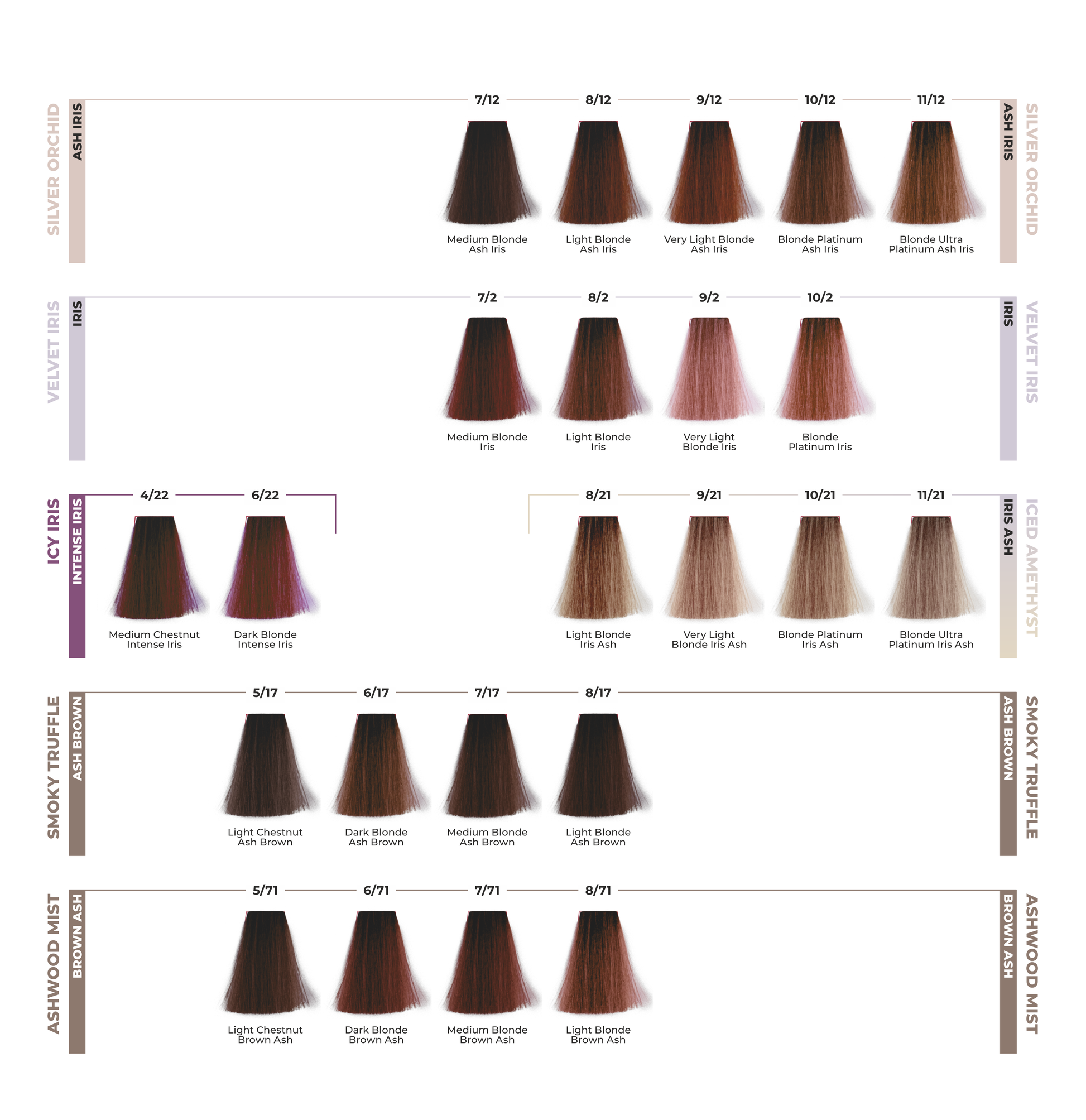• A választék lefedi az alapszínektől, szupervilágosító szőkéktől, boosterektől kezdve a legnépszerűbb divatárnyalatokat – a hűvös szőkétől a gazdag rézen át az álomszép pasztel tónusokig.